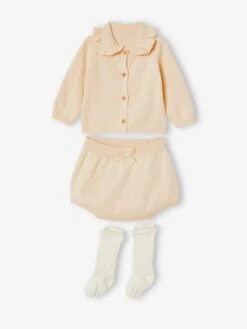 Ensemble 3 Pièces : Cardigan + Bloomer + Chaussettes Bébé Naissance Sable – Vertbaudet