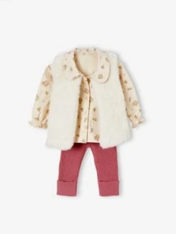 Ensemble 3 Pièces BĂ©bĂ© Blouse + Legging + Veste En Fausse Fourrure Bois De Rose – Vertbaudet