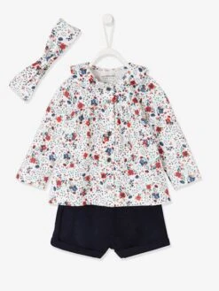 Ensemble 3 Pièces BĂ©bĂ© Fille Tee-shirt, Short Velours Et Bandeau Encre – Vertbaudet