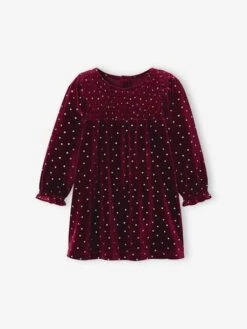 Ensemble BĂ©bĂ© : Robe En Velours + Gilet En Fausse Fourrure + Collants Bordeaux – Vertbaudet