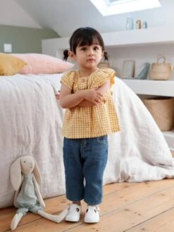 Ensemble Blouse Vichy En Seersucker Et Jean Large BĂ©bĂ© Carreaux Ocre – Vertbaudet