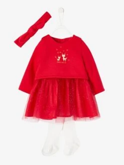 Robe Jacquard Bébé Son Bandeau Et Collant Assorti Rouge – Vertbaudet