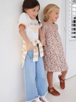 Robe Ă Smocks Motifs Fleurs Fille Beige ImprimĂ© – Vertbaudet