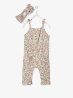 Ensemble Combinaison Et Bandeau Bébé Fille En Voile De Coton Imprimé Fleurs Rose Poudré – Vertbaudet