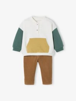 Ensemble BĂ©bĂ© Sweat En Molleton + Pantalon En Velours Ivoire – Vertbaudet