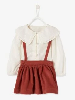 Ensemble Blouse En Plumetis Et Jupe En Velours BĂ©bĂ© Ivoire – Vertbaudet