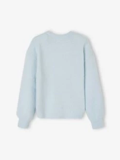 Pull fille en maille mousseuse toute douce 76% acrylique, 20% polyester, 4% élasthanne.