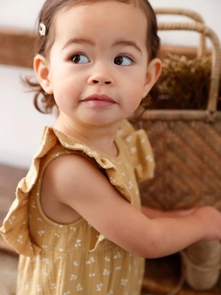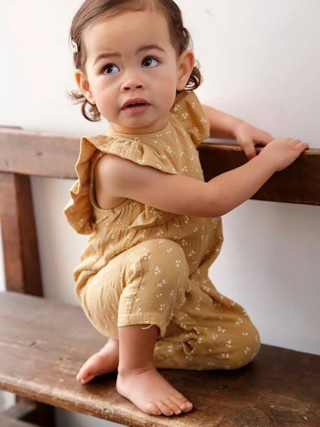 Ravissante, cette combinaison en gaze de coton offre le confort et la douceur indispensables aux plus petits. Bordée de volants, elle a cette petite touche romantique que l’on aime tant chez Vertbaudet !