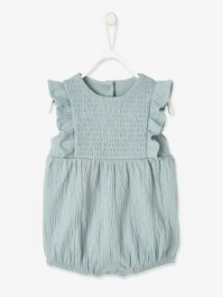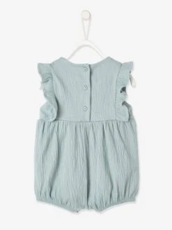 Combinaison courte sans manches bébé 97% coton, 2% polyamide, 1% élasthanne. Doublure 100% coton.