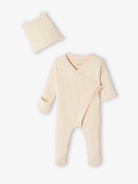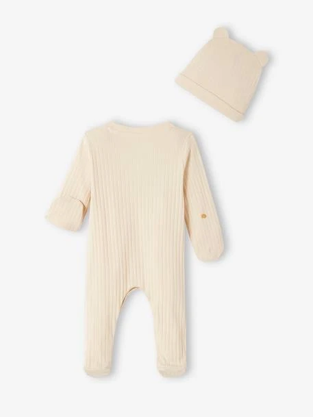 Combinaison en maille côtelée bébé et son bonnet 100% coton