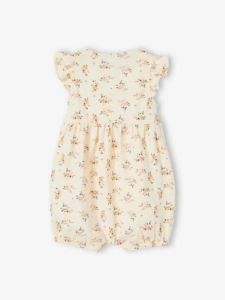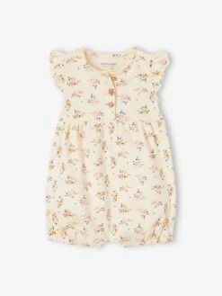 Une combinaison courte esprit bloomer sur un tissu délicatement fleuri… l’été peut arriver ! Un charme romantique qui va faire craquer les jeunes parents, une belle idée cadeau.