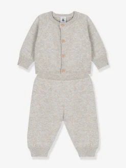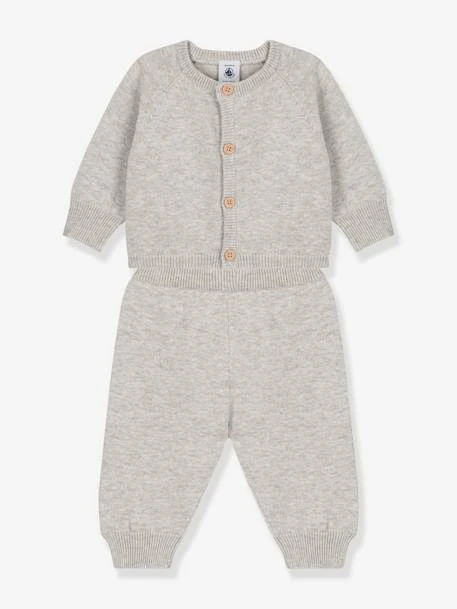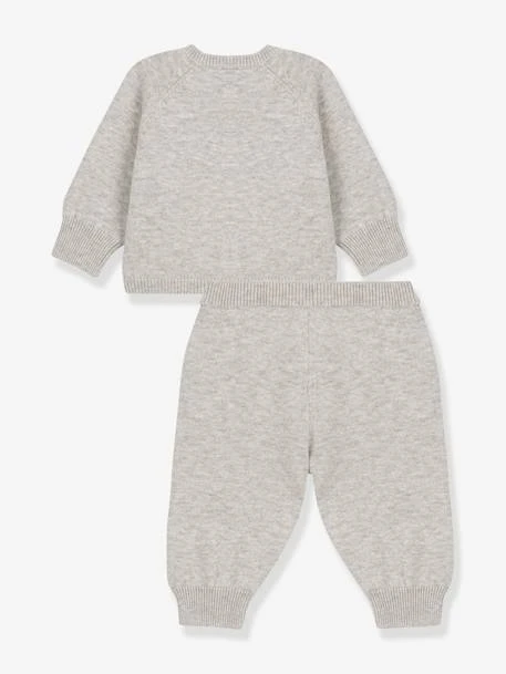 Un bel ensemble 2 pièces rĂ©alisĂ© avec un mĂ©lange de laine et de coton qui confère douceur et chaleur Ă votre bĂ©bĂ©.Â