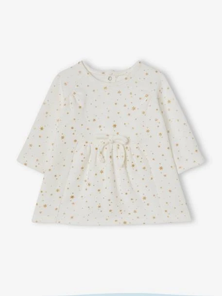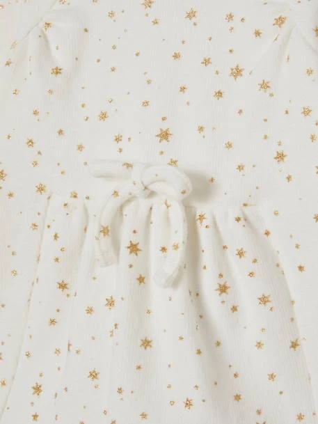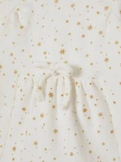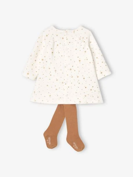 Des étoiles dorées, un petit noeud coquet et une coupe confort pour cette robe raffinée et poétique. Avec son collant, les filles vont scintiller de coquetterie !