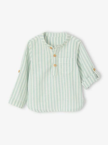 Une chemise col mao manches retroussables et un short à bretelles amovibles… et l’été peut commencer ! Un bel ensemble pour une cérémonie, une fête de famille et les belles journées d’été.
