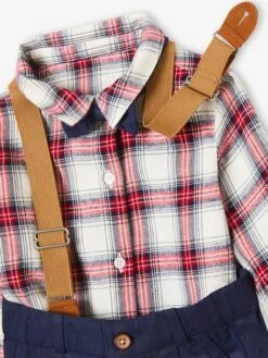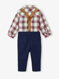 - Ensemble bébé chemise + pantalon à bretelles + noeud papillon