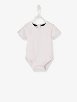 Body bébé uni blanc en maille 95% coton, 5% élasthanne