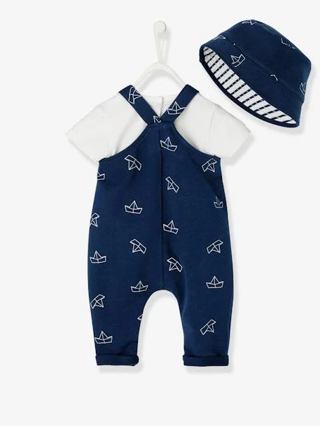 Bob et salopette bébé naissance en molleton et popeline imprimée 100% coton