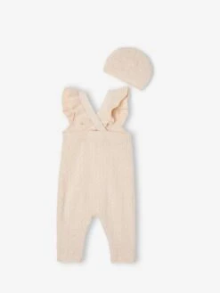 Ensemble bébé salopette en tricot et son bonnet 100% coton.