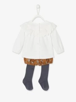 Ensemble blouse, short et ses collants assortis, une tenue complète qui simplifie la vie des parents et fait des bébés ravissants ! Un ensemble à mettre absolument dans la liste de naissance.