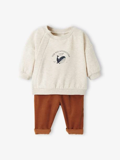 Ensemble naissance pantalon en velours + pull bébé 100% coton.