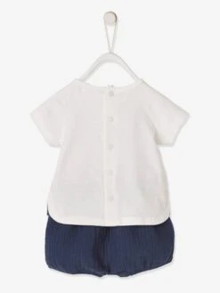 Ensemble naissance T-shirt et short de cérémonie bébé 100% coton.