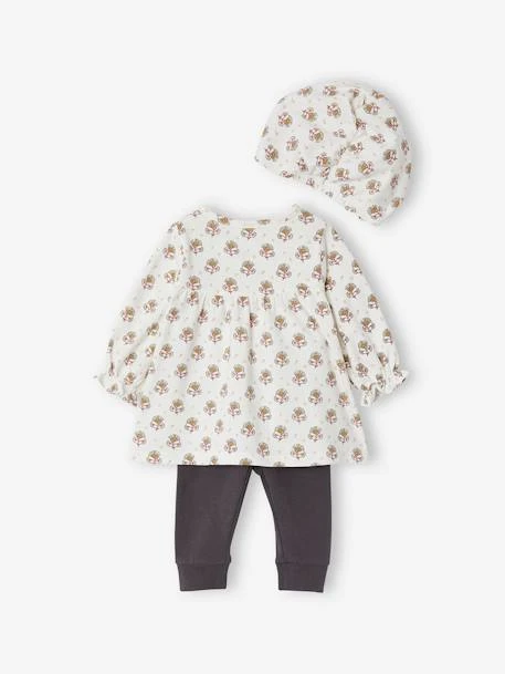 Ensemble bébé robe 89% coton, 7% polyester, 4% élasthanne + legging 96% coton, 4% élasthanne + chapeau-foulard 89% coton, 7% polyester, 4% élasthanne