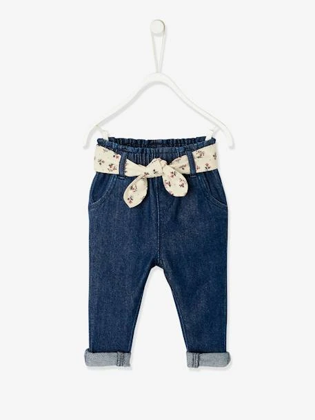 Jean avec ceinture en tissu bébé 100% coton.