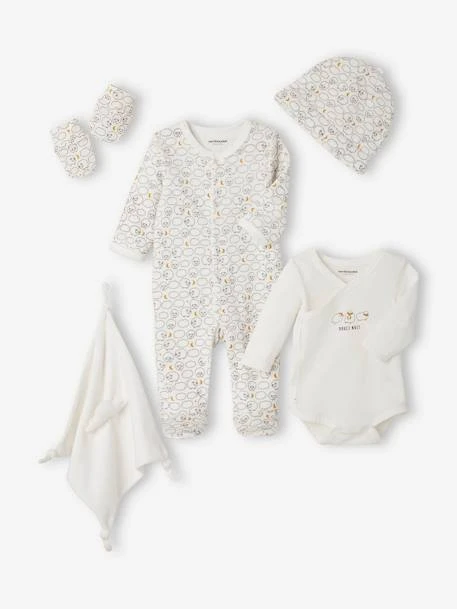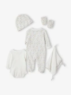 Déjà dans sa valise, ce kit de naissance s’emporte à la maternité ! Il comprend l’essentiel pour le confort de bébé ! Body, pyjama, doudou, bonnet et moufles envelopperont bébé de douceur, le tout dans une adorable valise colorée et joliment décorée !