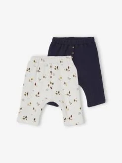 Lot de 2 pantalons bébé en nid d’abeille 100% coton.