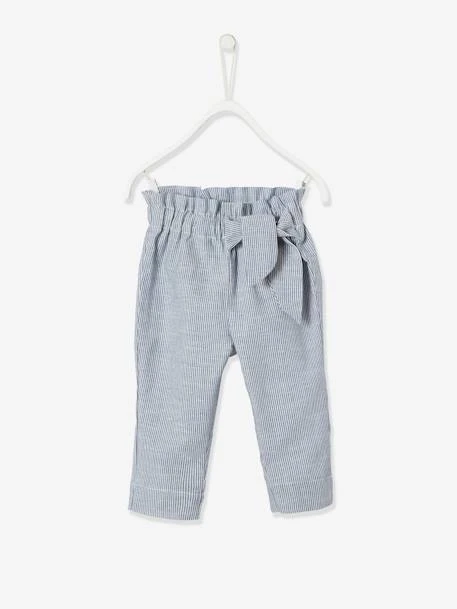 Pantalon rayé bébé fille en toile slubbée pur coton