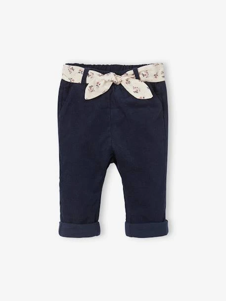 Pantalon en velours bébé avec ceinture en tissu. Velours 100% coton, doublure 100% coton.