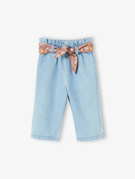 Pantalon large bébé en denim 100% coton, ceinture en tissu 100% coton.