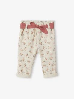 Pantalon paperbag bébé avec ceinture 100% coton.