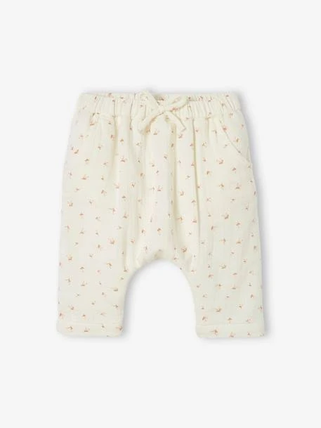 Pantalon sarouel en gaze 100% coton bébé, doublure en jersey 100% coton.