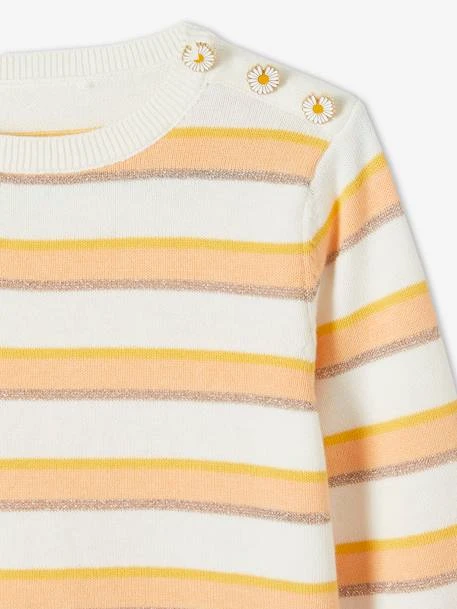 Et voguent les petits looks stylés avec ce pull rayé revisité ! Une jolie succession de détails : des rayures irisées et des boutons marguerite sur l’épaule pour la touche printanière… Ce pull est déjà le chouchou de la saison ! On craque… et vous ?