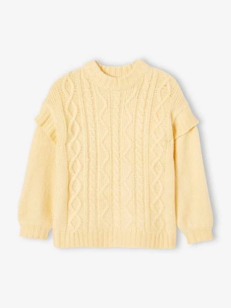 Joli jeu de torsades pour ce pull authentique et chic. On aime les volants aux Ă©paules et la maille mousseuse ultra douce. Ce pull plein de fantaisie rĂ©chauffe l’hiver avec charme et complète Ă merveille leur dressing.