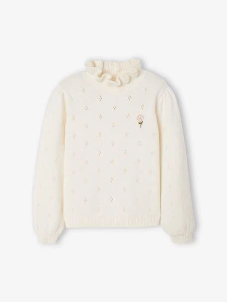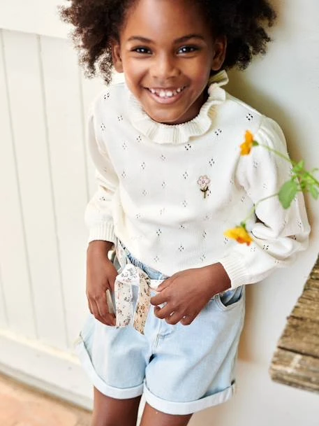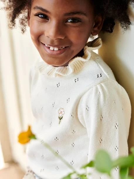 Pull fille en maille pointelle ajourée 78% coton, 22% polyamide ultra douce.