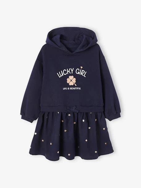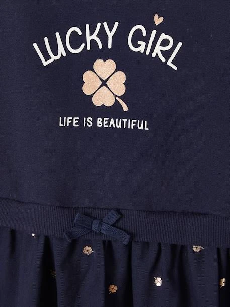 Robe bi-matière fille : Haut en molleton 60% coton, 40% polyester.