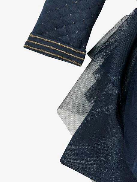 Robe bi-matière : Haut en molleton matelassé 63% coton, 31% polyester, 4% polyamide, 2% fibre métallisée.