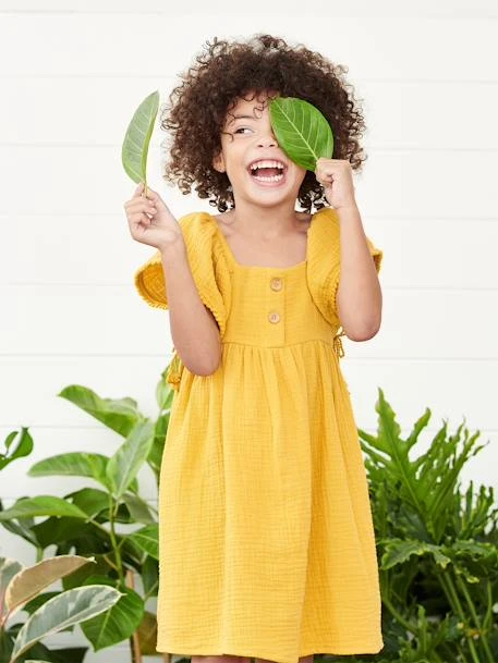 Ne cherchez plus, vous avez trouvĂ© la robe chouchou de l’Ă©tĂ© ! Coup de coeur assurĂ© pour cette robe en gaze de coton animĂ©e de dĂ©tails charmants : des manches volantĂ©es soulignĂ©es de pompons, des noeuds fantaisie.. un esprit ethnique pile dans la tendance, on adore ! La matière chouchou de l’Ă©tĂ© lĂ©gère naturellement gaufrĂ©e, un coloris ensoleillĂ©… c’est la robe idĂ©ale pour les vacances !Â
