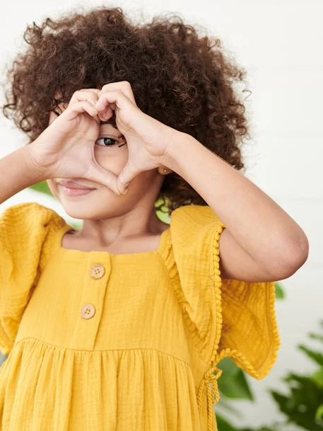 Blouse fille en gaze pur coton, matière légère naturellement gaufrée.