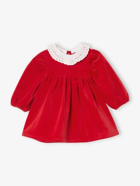 Du velours pour la douceur, un col en broderie anglaise pour le style… Bébé sera au coeur de la fête avec cette robe au couleur de Noël ! Avec son collant, ce duo est une belle idée à déposer au pied du sapin.