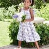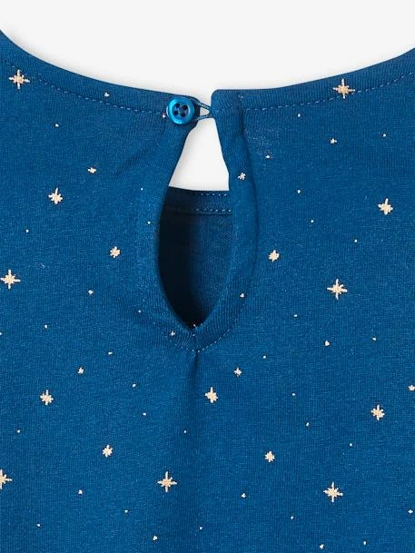 Des étoiles irisées, une ceinture qui brille… il n’en faut pas plus pour donner un air de fête à cette robe. Elle a tous les jolis détails du moment et se prête à toutes les fantaisies pour le bonheur des petites filles.