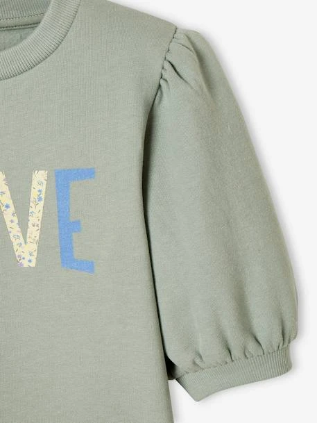 Sweat manches courtes fille en molleton 80% coton, 20% polyester, gratté doux à l’intérieur.